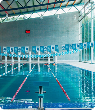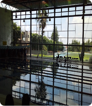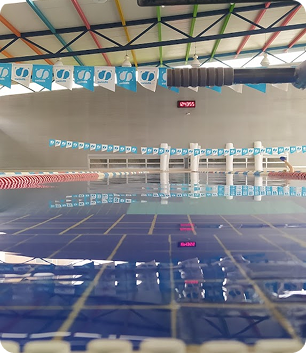Alberca techada y climatizada todo el año, espacios de vestidores y regaderas amplios, área de espera con vista panorámica, cafetería con Wi-Fi, estacionamiento privado, acceso controlado y personal de seguridad privada en el ingreso.